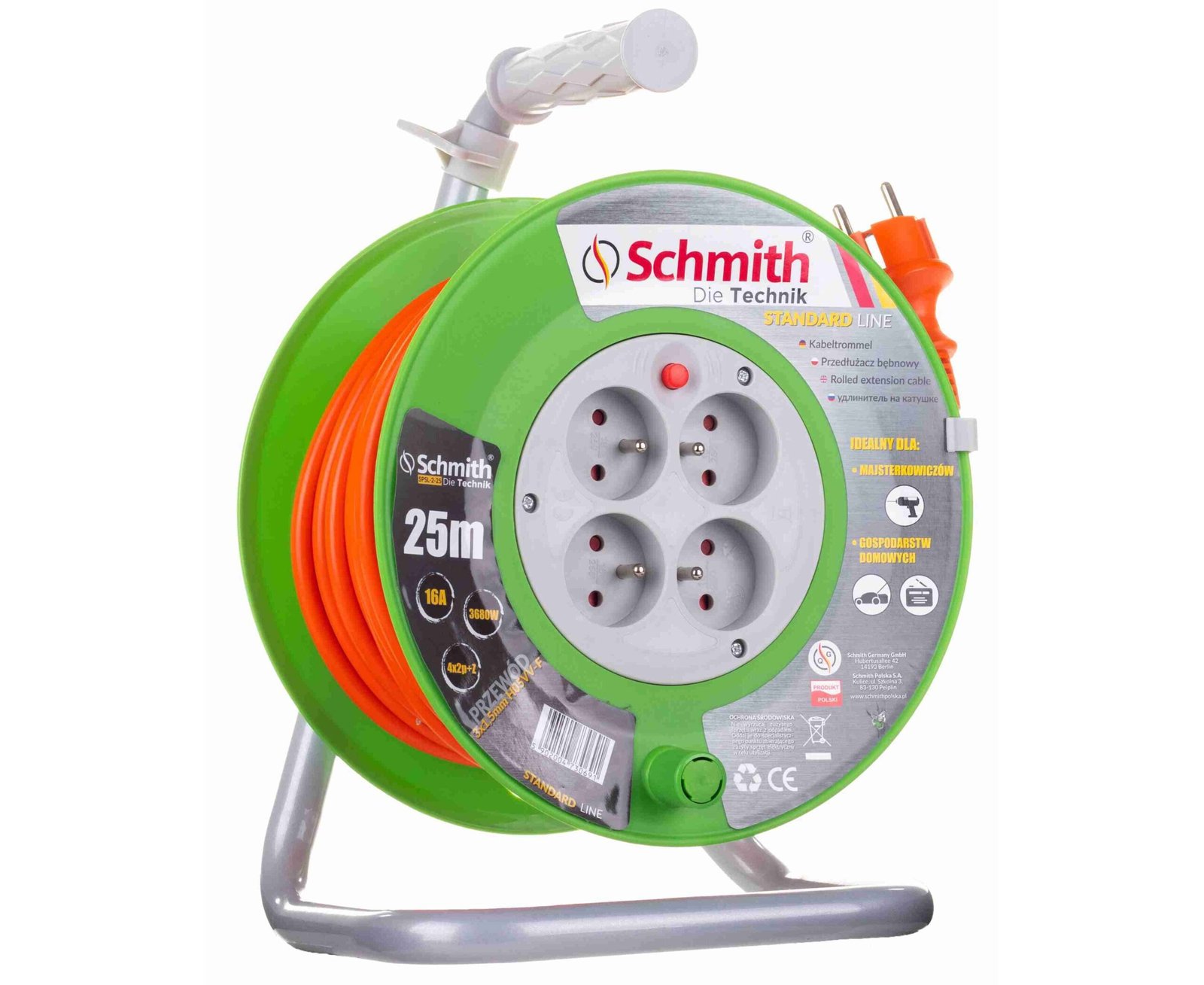 Przedłużacz bębnowy, przewód 3X1,5mm, 25mb